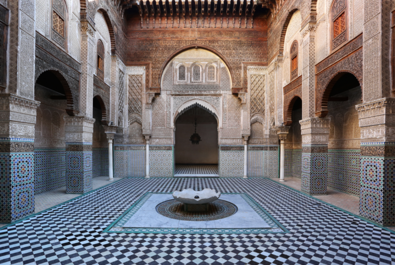 Another architectural gem is the Bou Inania Madrasa, built in the 14th century by Sultan Abu Inan Faris. This madrasa, which served as both a religious school and a place of prayer, is renowned for its intricate woodwork, stucco decoration, and marble flooring. The Bou Inania Madrasa is one of the few religious buildings in Fes that is open to non-Muslim visitors, offering a unique opportunity to experience the spiritual and aesthetic beauty of Islamic architecture.